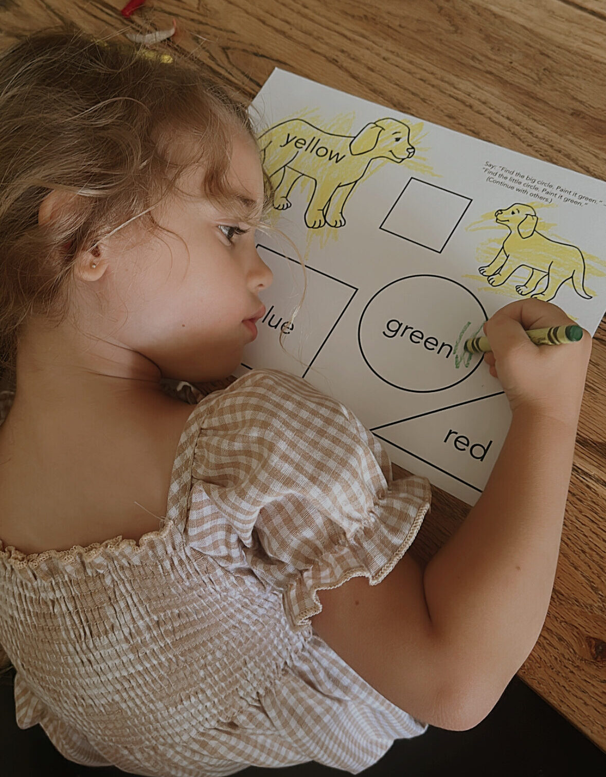 Clean up time is done with both parent and child, working together to clean-up after breakfast, toys, or another task. This leads into together time where the main lessons are completed. The lesson plans for each day are easy to follow with clearly laid-out directions. There are many hands on and sensory activities. Including making popsicles or English muffin pizzas, playdough, an outdoor color hunt, and pretending to be different animals.